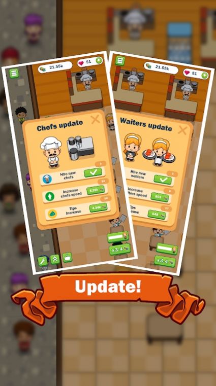 1、创新的模拟经营游戏,您将成为一位咖啡馆老板,自己开设咖啡馆,成为业界的领先者。