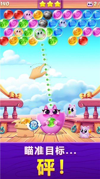 游戏中拥有很多的技能,比如泡泡爆破技能,能够更加爽快的进行大范围的消除,还有可爱的小猫咪可以让玩家来进行收集,游戏内容还是十分好玩的。