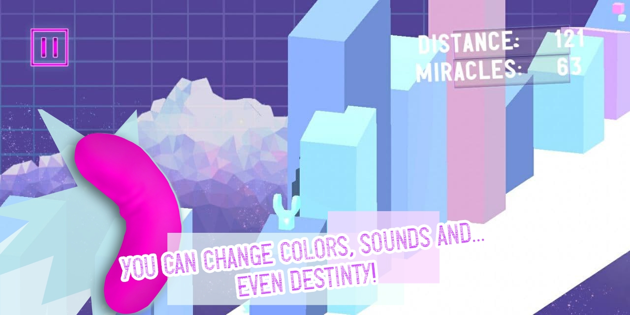 1.与彩色方块碰撞改变路线,收集道具进一步提升,但不要飞得太高。