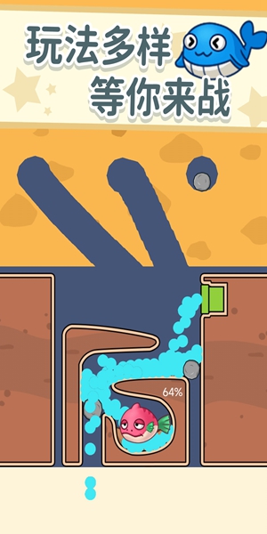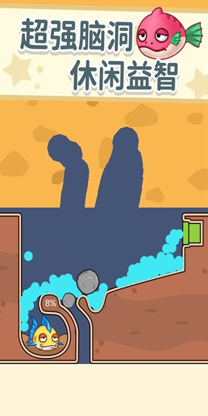 3、你可以通过正确的移动沙粒,将水引导到你的身边,让你的鱼儿获救。