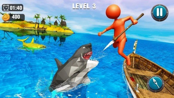 拿起你的长矛能尽情的挑战,用你的技巧和操作狩猎更多鲨鱼;