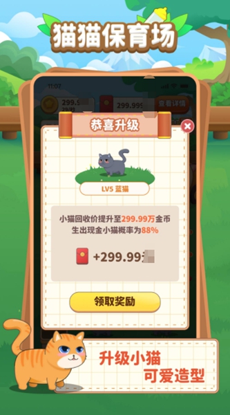 2、在喵喵孵化场内,可以通过人工培育的猫咪进行等级提升。