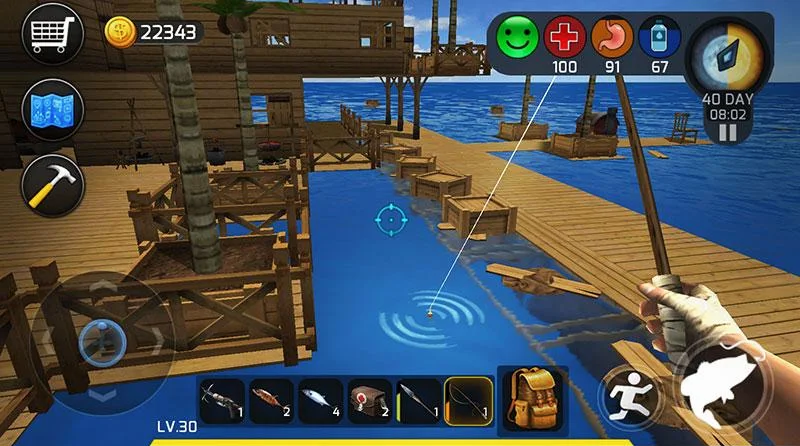 通过钩子可以获得丰富的食物,这些都是玩家生存的必需品