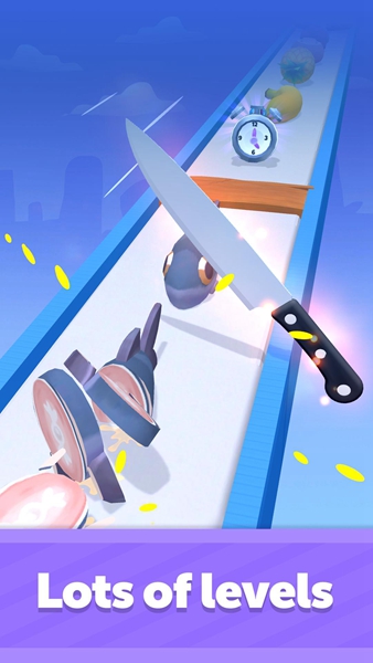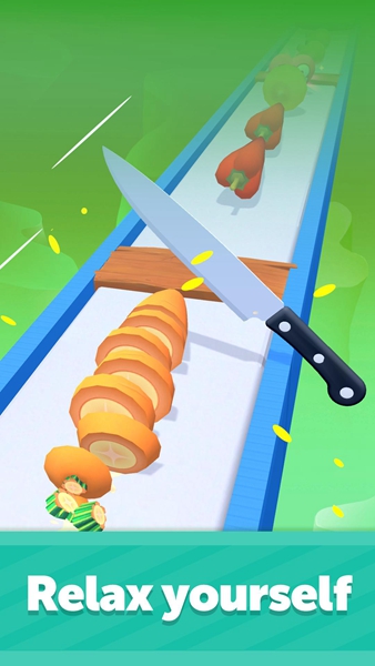 2、玩家需要操纵锋利的切菜刀来切开全部进来的物品,在您的切菜刀下。