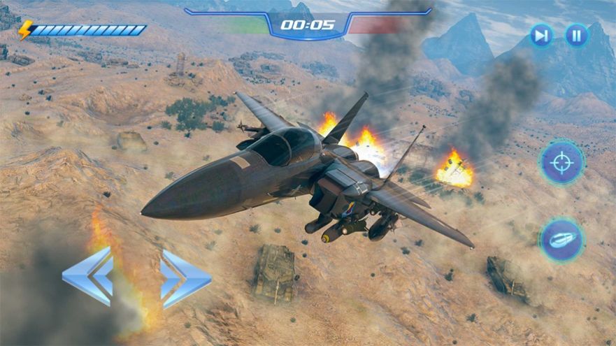 2.控制起来很简单,左下角是控制飞机的上下左右四个方向转下,右下角是攻击。