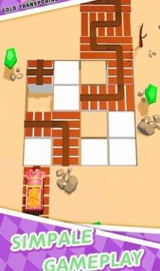 1、黄金运输是一款拼图相连的游戏,将杂乱的轨道去进行挪动拼凑。