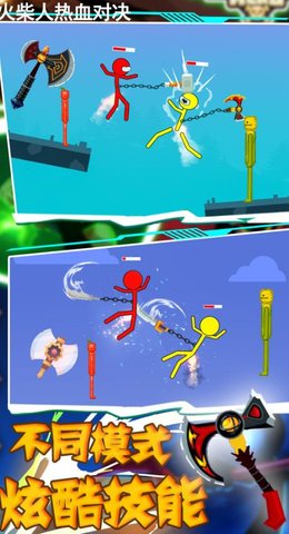 火柴人热血对决是一款给我们带来无限的惊喜的动作格斗游戏,我们将会去很好的选择自己喜欢的游戏模式,无论是单人游戏模式还是双人游戏模式都是非常的值得我们去选择的,超级多的游戏角色,这些游戏角色当中的特点都是不一样的,我们一定要不断的选择超级多的装备来增强我们的战斗实力哦。