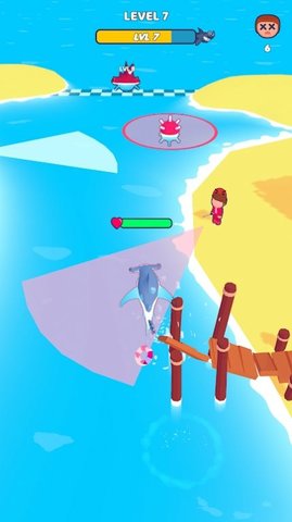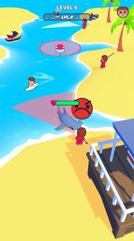 3、玩家必须操纵鲨鱼吃岸上的人,玩家必须完成否则他们会攻击你。