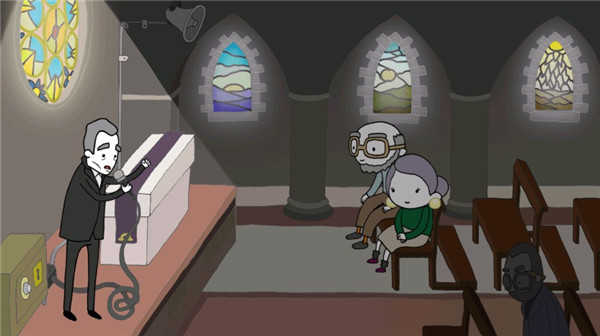 9、对话完成之后,查看墓园当中的东西之后返回教堂当中,和妈妈进行对话。返回肉店当中