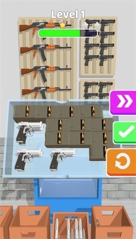 1、枪械排序是一款创意新颖的益智解谜游戏,要求玩家根据枪械种类进行排列。