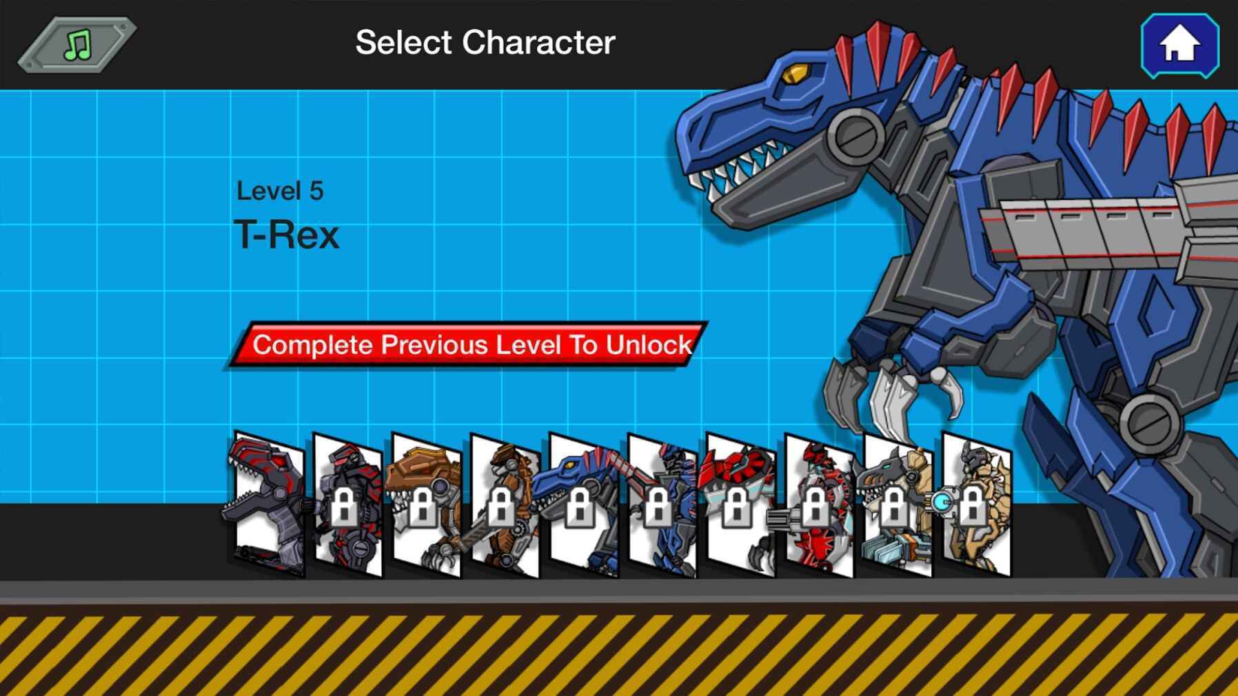 暴龙兽进攻(T-Rex Attack)这款游戏采用了卡通的风格,在这里有着超多的关卡等着玩家来挑战,每一关的关卡难度都在逐渐的升高,你还可以去解锁更多的暴龙,变得更加强大,喜欢这款游戏的玩家快来下载体验一下吧。