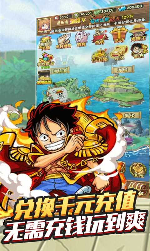 帝国光辉草帽航海王是一款回合制的rpg手游,经典的动漫题材!游戏以回合制战斗玩法为核心,玩家通过收集和养成原着动画中形形色色的角色来组成属于自己的海盗团,通过冒险、闯关等玩法强化自己的伙伴,在PVP对决中占据一席之地,脱颖而出成为最强海盗王。玩家在游戏过程中,不仅是作为主角组建海盗团从而踏上强者之路,也是对《ONE PIECE》动画的经典重温。