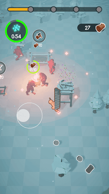 1、玩家要想在寒冬生存下去需要不断收集各种有利的物资,可以在森林里砍伐大量的树木,建造自己的房屋,同时还能搭建属于自己的营地。