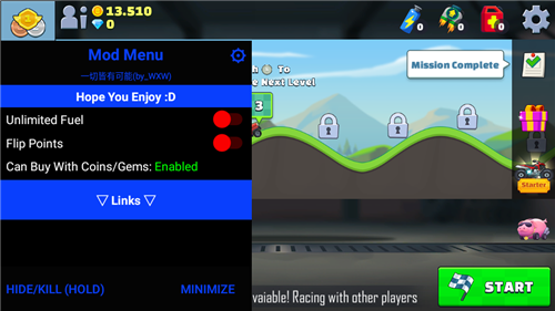 登山越野竞速内置菜单版是一款非常趣味的手机平面赛车游戏,在这款游戏当中玩家们将要驾驶自己改装的赛车进行竞速体验,现在这款游戏自带内置菜单,所有的物品以及隐藏人物都能够在线解锁,一键拥有全部的车辆,游戏中你能够与全国玩家们一起在线进行飙车,平面的画面更加的趣味,赶快下载吧。