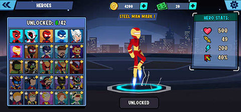 1、是一款动作类游戏,玩家可以选择不同的火柴人角色进行对战。