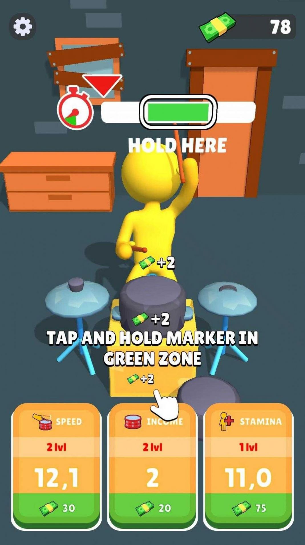 闲置的鼓手是一款有着很多的音乐等着我们去很好的进行着演奏的音乐模拟游戏,我们需要不断的去打击着鼓面去发出各种动听的声音出来,超级多的曲目等着我们去很好的进行着演奏,一定要把自己的各种演奏技术去变得更加的高超哦,这样我们才能够去解锁更多的曲子。