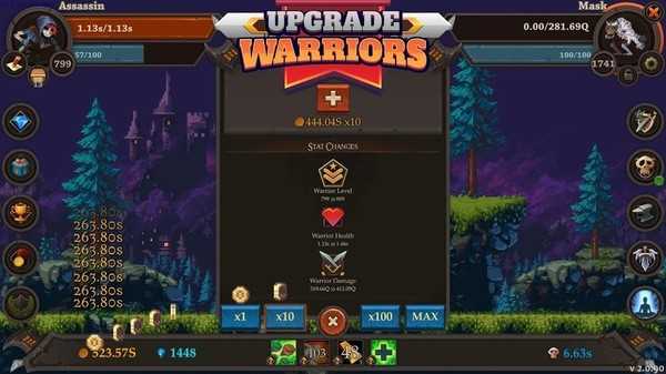 点击勇士游戏中,允许玩家选择强大的英雄,这些英雄可以通过增加其属性,才能和能力来升级。这些英雄可以装备可以从敌人身上掉落的独特物品。每个项目都可以升级为更高的稀有度。还有一个手工制作系统,其中垃圾物品可以用作手工材料。