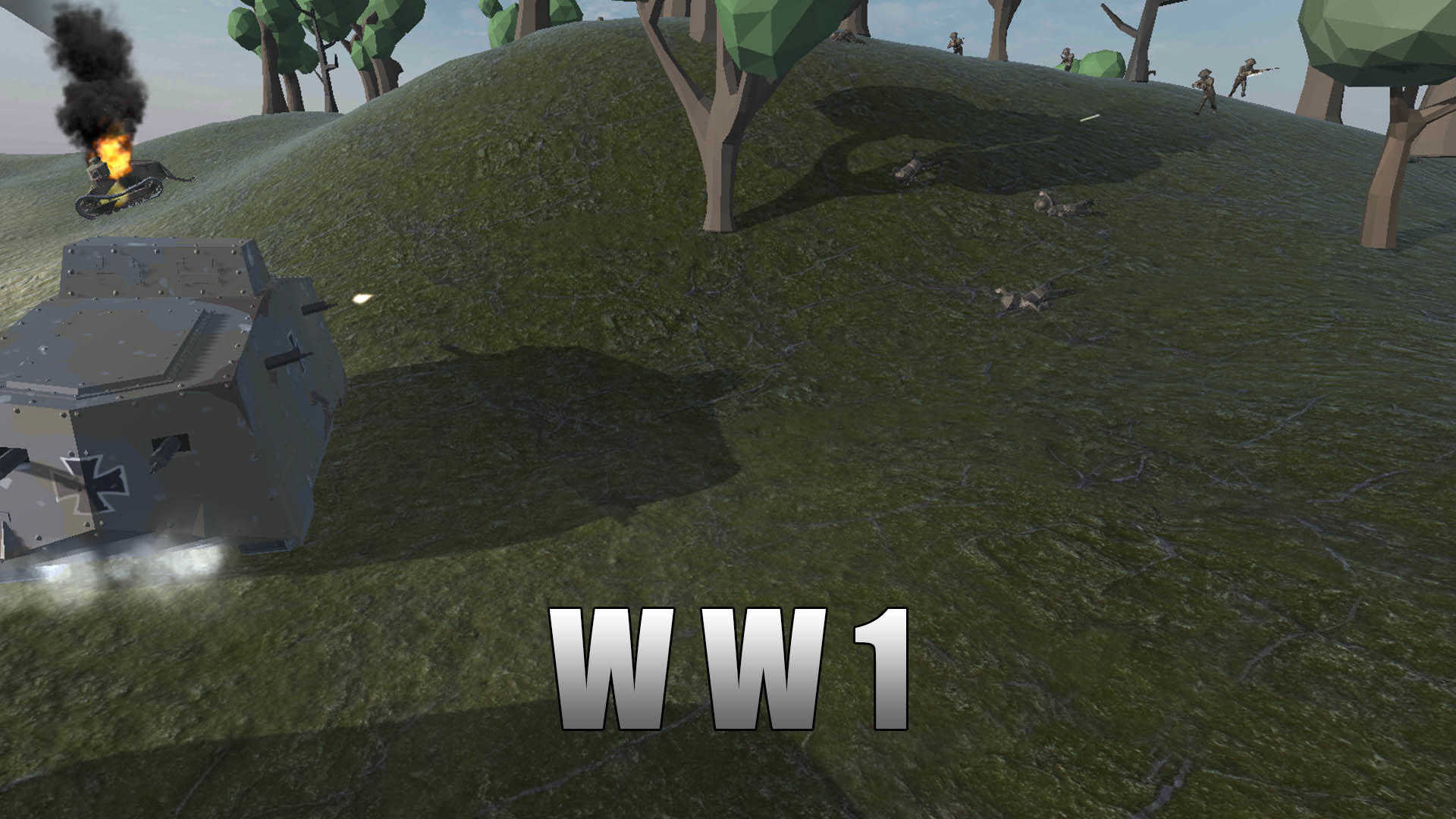 A7V重型坦克,搭配1门坦克炮和4挺机枪,较低的移动速度和较高的生命值,突防利器。