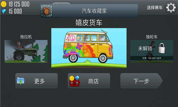 下面介绍游戏中期最强劲的两部车,没错,虽然还有那么多场景,那么多车没解锁,但只要这两辆车有一个解锁了,那么游戏就算是步入中期了——沙丘越野车和大手指Big finger。解锁之后要做的当然是把它们升到最高级,建议先升级大手指(看着就很爽)。