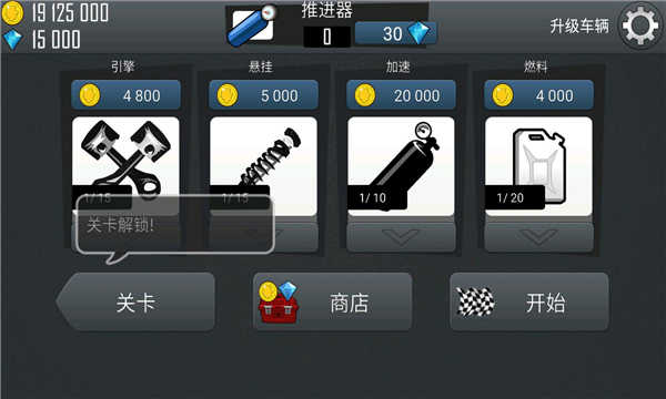 排气助推力:低燃料时加速,爬山活动必带,适合探险模式,竞速模式配合推力器使用效果极佳。