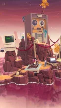 从画风来说,花园之间的画风绝对是满分的存在,浓浓的欧式油墨画的风格,透露着许多不可思议的荒诞感:唯美的岛屿、山峰,可围绕着它们的装饰却异常夸张,比如硕大的电视机屹立在半山腰上,一架巨型的钢琴直插在远处的礁石里…但是总体看起来就是一个字:“舒服”。