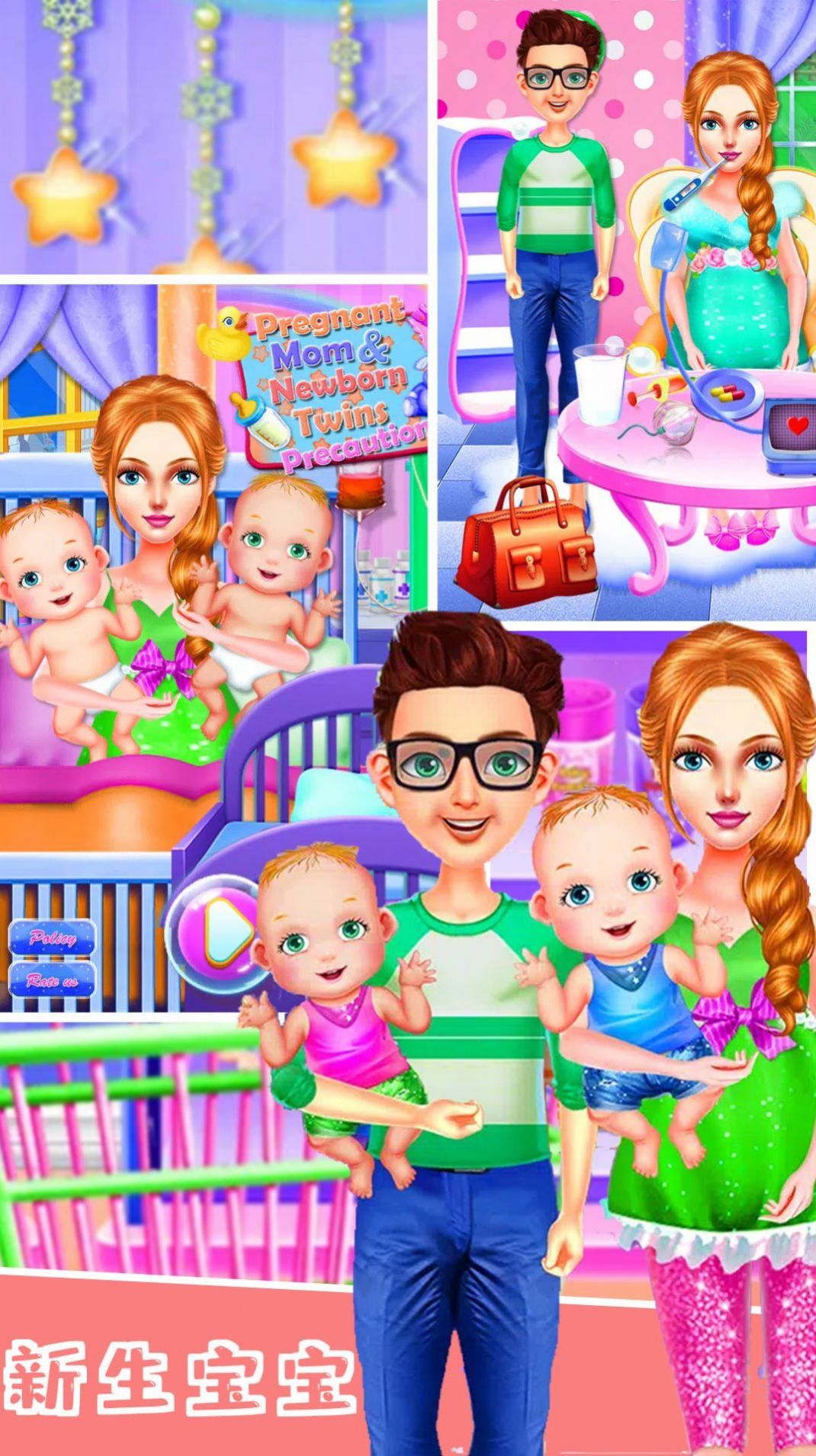 3、游戏中有各种各样的婴儿照顾任务,包括洗澡、喂食、换尿布等,你需要认真处理这些任务,从而得到金币和经验;
