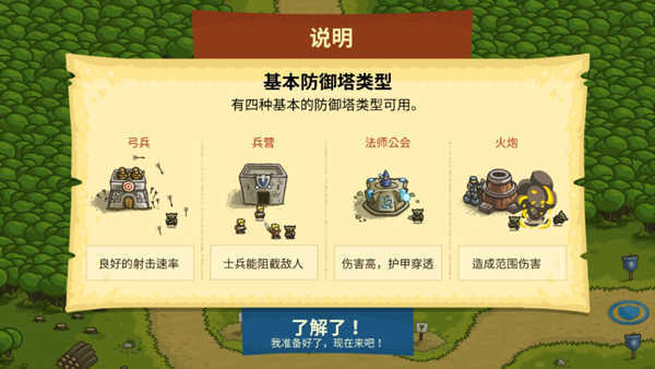 1、建筑:游戏中有4基本建筑:箭塔、法师塔、兵营和火炮塔。每种建筑都可以进行升级,当升到第四级时,出现转职选项,可以二选一。升级到高级建筑后,还可以配备2至3种专属技能