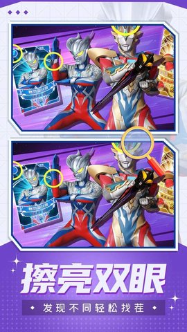 奥特曼一起来找茬是一款超级的值得我们去无限的注意的休闲闯关游戏,我们必须要在规定的时间内去很好的把这些不同之处去寻找出来,玩家可以在这款游戏当中尝试不同的游戏挑战,整个的游戏奖励都是超级多的,超级多的游戏模式值得我们去无限的选择。