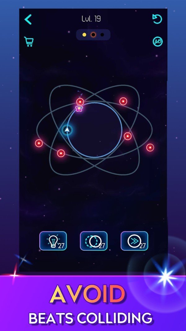 简约清新的游戏风格,每个轨道都有一个目的地玩家要操作着音乐线到达目的地