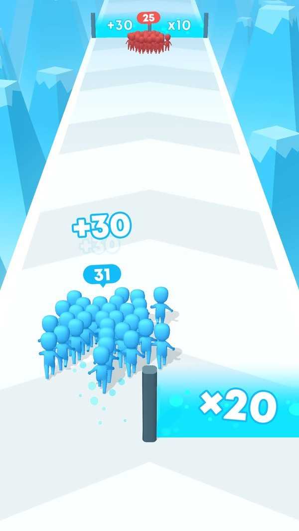拥挤大师游戏中玩家们将会进行不断的冒险,还有很多的趣味玩法,玩家们将会在每一个关卡中,进行操作着一群兵团一样的火柴人进行着前进闯关,游戏中还能进行不断的扩大我们的数量,遇到最后的终点的时候,玩家们还会遇到另外的一个军团,玩家们这时候就需要进行拥挤的pk了,游戏的玩法还算是非常的休闲的。