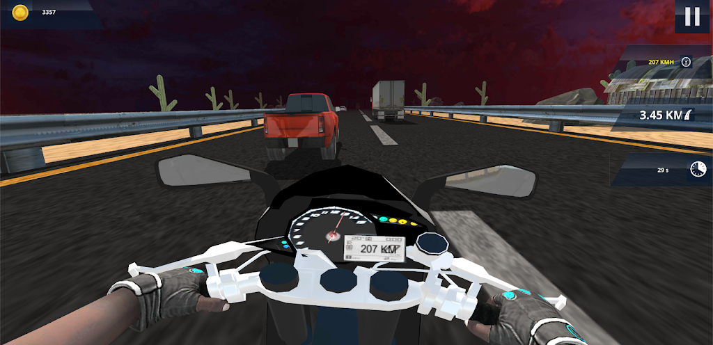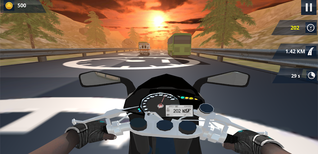 致命驾驶员采用了第一视角的设定,因此玩家们将能够在游戏内拥有着极为真实的体验感,驾驶着自己的摩托车在各个道路之中展开自己的竞速挑战,在你的前方将会出现各种各样的障碍,玩家们需要依靠自己的技术来进行灵活的躲避,顺利完成任务之后的你可以去解锁更多的新式摩托车,还能够自由改装,快来下载游戏试一试吧。