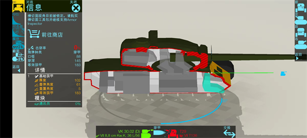 3、了解坦克世界中坦克的装甲保护,弹药穿透和模组位置;