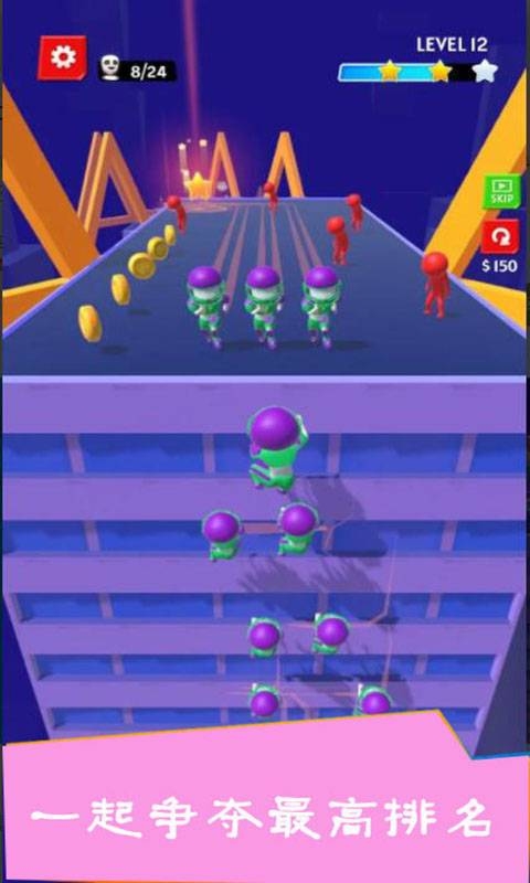 欢乐奔跑是一款非常好玩的手机趣味跑酷闯关游戏,玩家们需要在这款游戏当中控制你的火柴人大军顺利的通过各种的跑酷关卡挑战,在游戏里面拥有非常多样的障碍物会阻挡你的前进,你要指挥你的火柴人顺利的到达终点,游戏的玩法特别多样,是一款百玩不腻的手机跑酷游戏。