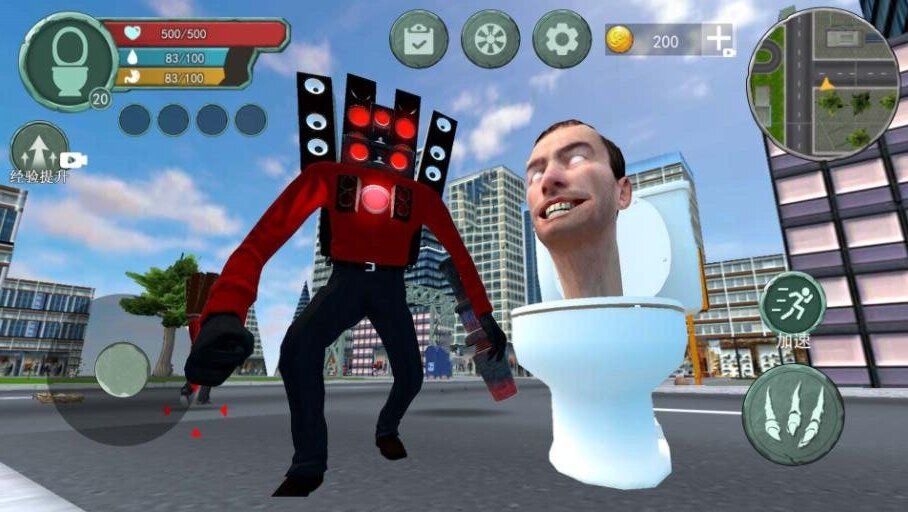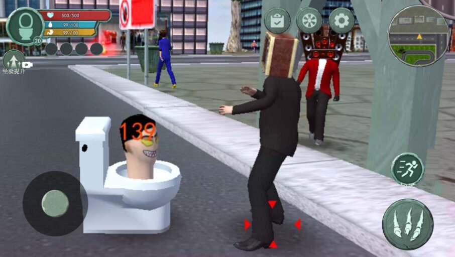 3、马桶人被电视人追杀,需要不断躲避、反击来保护自己的生命,变得更加的强大;