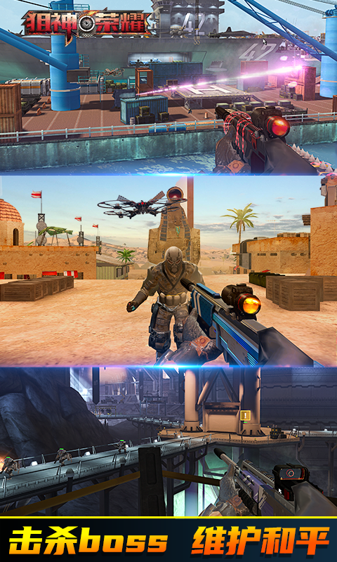 全球玩家同步,跨国进行真人PK;同级别配对,公平展开狙击大战。