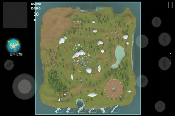 1.玩家飞行到一个满是危险的世界中,并完成各种挑战消灭地图上的敌人生存到最后,就可以完成吃鸡;