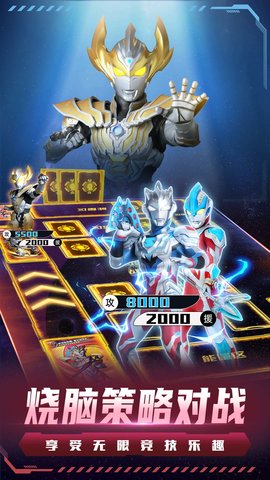 1、是一款创新的集卡对战游戏,玩家可以通过收集奥特曼卡牌来组建强大的奥特小队,在对战中击败对手,展现自己的战略和操作能力。