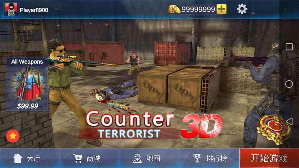 反恐模拟器无限金币是一款非常好玩的手机模拟射击竞技欧西,在这款游戏当中玩家们能够选择恐怖分子或者警察势力来进行射击竞技对战,每天都有海量的玩家们选择在这里进行射击体验,游戏的武器装备非常的丰富,就连各种重火器在这里也能够找到,同时在款游戏当中玩家们还能够体验各种的战术配合,更多玩法等你下载。