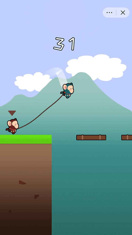 2、两猴子是依次开始的,点击屏幕即可让他们跳跃;
