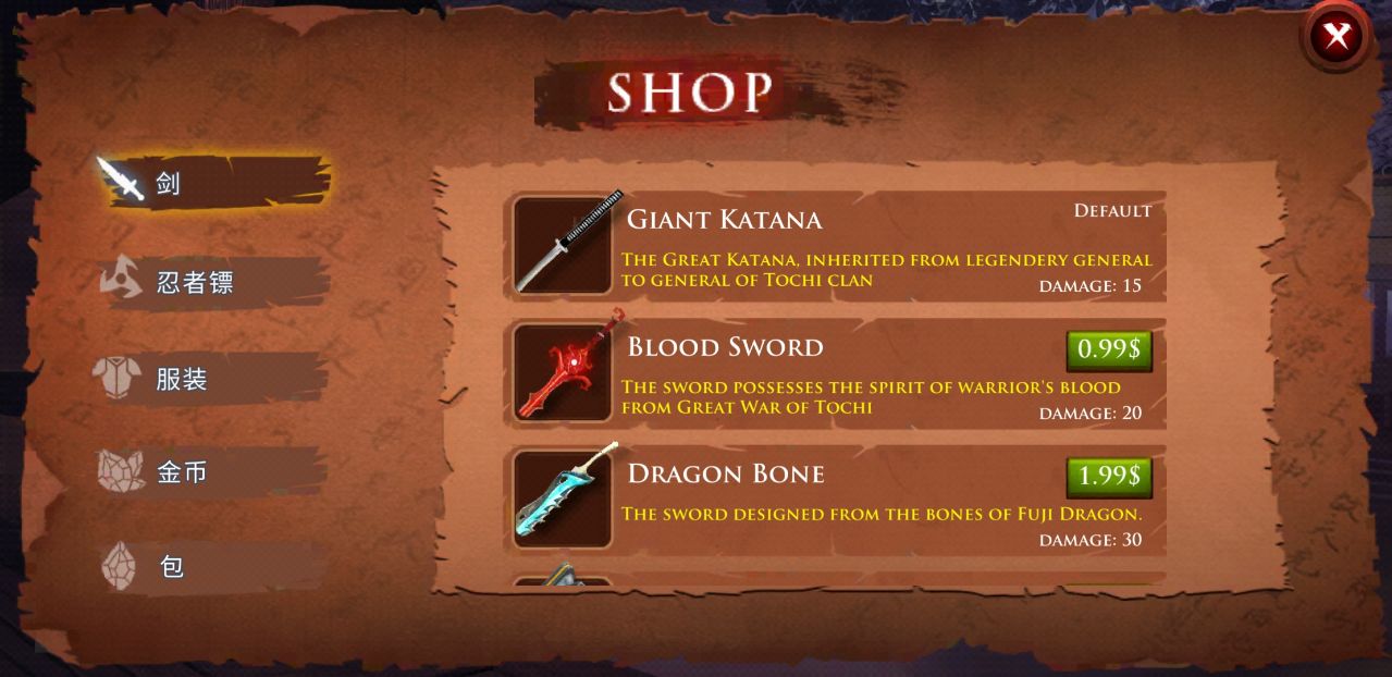 在游戏中,玩家们需要扮演一个嫉恶如仇,反对邪恶统治的忍者,使用自己熟悉的武器作战,解决各种强大的对手,从而获得金币,升级自己的人物和武器、护甲、让战斗变得更加简单,你要做的就是拯救整个王国。