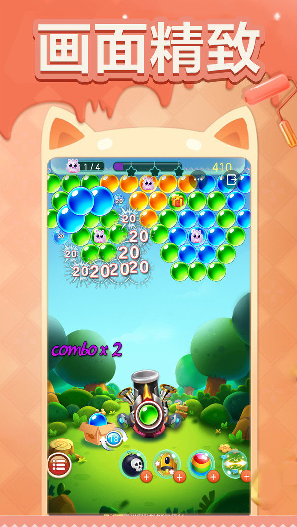 彩虹泡泡:触及的泡泡同色全消;