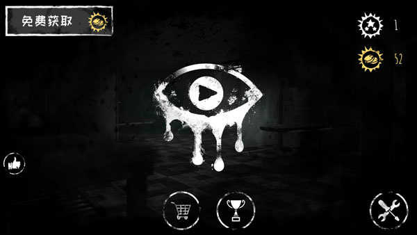 进入到整个游戏,游戏界面很简单,一直流血的眼睛,还有开始按钮,还有一些其他按钮。我们一一说起。