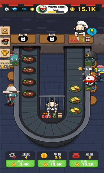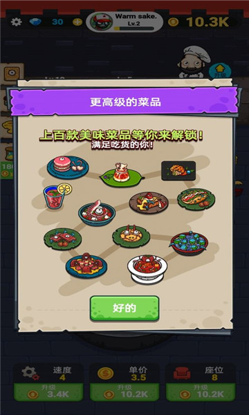 1.是一款轻松上手的点击放置类游戏,自由经营自己的餐厅。