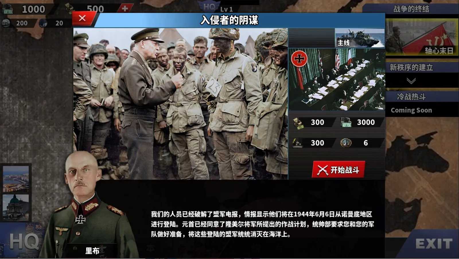 4、召唤全球最著名的将军们前来商讨计划,开启一次对抗敌人的计划,全球的战争即将爆发出来。