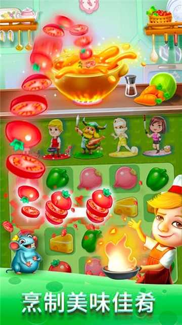《美食萌萌消》是一款利用消除食材来烹饪美食大餐的益智游戏。消除美味食材,在食物搅拌器中烹饪,然后收集星星!通过重重障碍,解决掉讨厌的老鼠,还有不断滴落的油。赢取厨师徽章,作为您烹制出绝妙尘间美食的证明!烹饪与冒险堪称绝佳搭配!环游世界,唤醒被诅咒的木乃伊,向维京战士问好。在热带天堂的沙滩上观光漫步,享受迷人乡村的宜人翠色,并在沿途烹制美味佳肴!厨师们,做好准备!带上您的厨师帽和旅行地图,一场充满奇趣的冒险正等待着您!