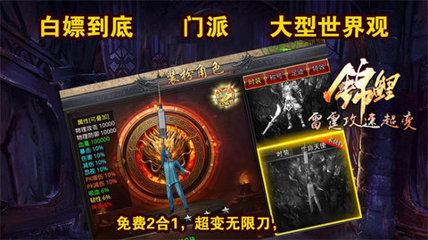 1、锦鲤雷霆攻速超变是一款充满激情和令人兴奋的传奇游戏。