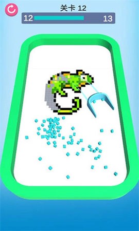 1、在游戏中你需要去收集很地面上的小方块,然后把这些小方块框起来,移动到对应的位置接成一块完整的图案。