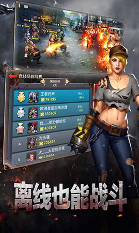 末日血战红包版背景设定在世界末日之后,人类陷入了一片混乱和恐慌之中。玩家需要扮演幸存者,与其他幸存者一起对抗丧尸和敌人,保卫自己的基地和资源。该游戏在竞技场模式下,玩家可以和其他玩家一起组队对抗敌人,收集金币赚钱,购买武器装备,提升实力,最终获得胜利。