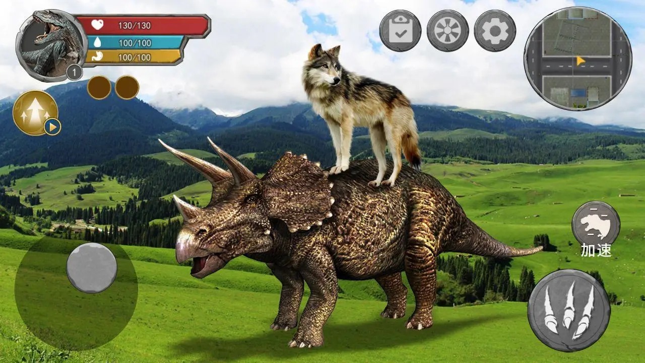 恐龙抗狼吞噬生存是一款好玩的冒险游戏,玩家在游戏内扮演恐龙,游戏内会有许多危险出现,需要想办法生存下来,收集各种食物还有水源,让自己生存的更久,去吞噬其他生物可以帮助自己提高战斗力,游戏内有着许多冒险的内容,都是相当精彩的,赶紧来下载试试吧。