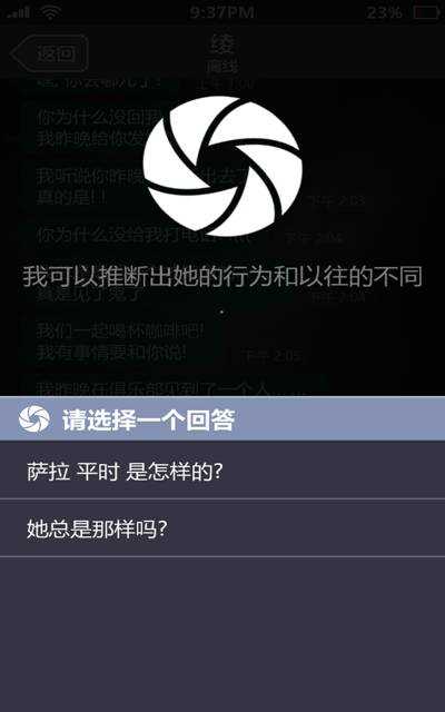 2、通过查看萨拉的短信、笔记、邮件,以及与萨拉的亲友通话,尝试着将她的生活近况拼凑起来。